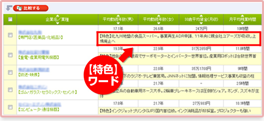 「特色」の確認方法業界やフリーワードでの検索結果画面に、「東洋経済-特色DATA」を一覧表示しているぞ。